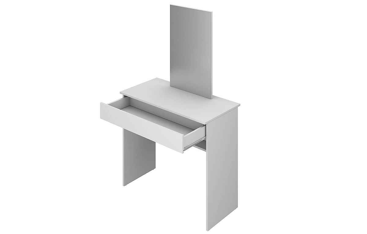 Part of our contemporary dressing table collection, the Emerson Dressing Table is a sophisticated and functional addition to any bedroom or dressing room. Measuring 150cm tall and 90cm wide with a depth of 44.5cm, this dressing table accommodates an ample sized table top for keeping your favourite products within easy reach. Showcasing a streamlined silhouette, the Emerson Dressing Table has been crafted using a durable, high quality manufactured wood. Beneath the table top you’ll find a spacious drawer with a depth of 28.5cm, perfect for housing daily essentials. The mirror is arguably the most important part of any dressing table, which is why the Emerson includes a generously sized mirror measuring H.69.85cm x W.44.45cm